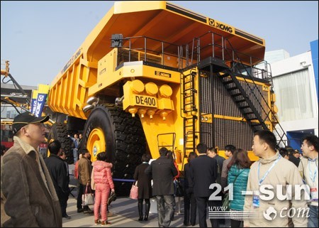 此次寶馬展上,徐工成功推出DE400礦用卡車。DE400是由徐州工程機械研究院研制生產(chǎn),是目前全球載重量最大的礦用卡車,載重量可達400公噸,最高速度50km/h,舉升時間24s。采用先進的交流電傳動系統(tǒng),原裝進口環(huán)保電控高性能柴油發(fā)動機,動力強勁。箱形截面結(jié)構(gòu)車架,由高強度優(yōu)質(zhì)合金鋼板和鑄鋼件制造。智能制動技術,防止誤操作。符合人機工程學的駕駛室舒適安全。整車配備自動稱重系統(tǒng)、集中滅火系統(tǒng)、快速注油系統(tǒng)、自動潤滑系統(tǒng)及各種安全設備,保證整車運行安全高效。